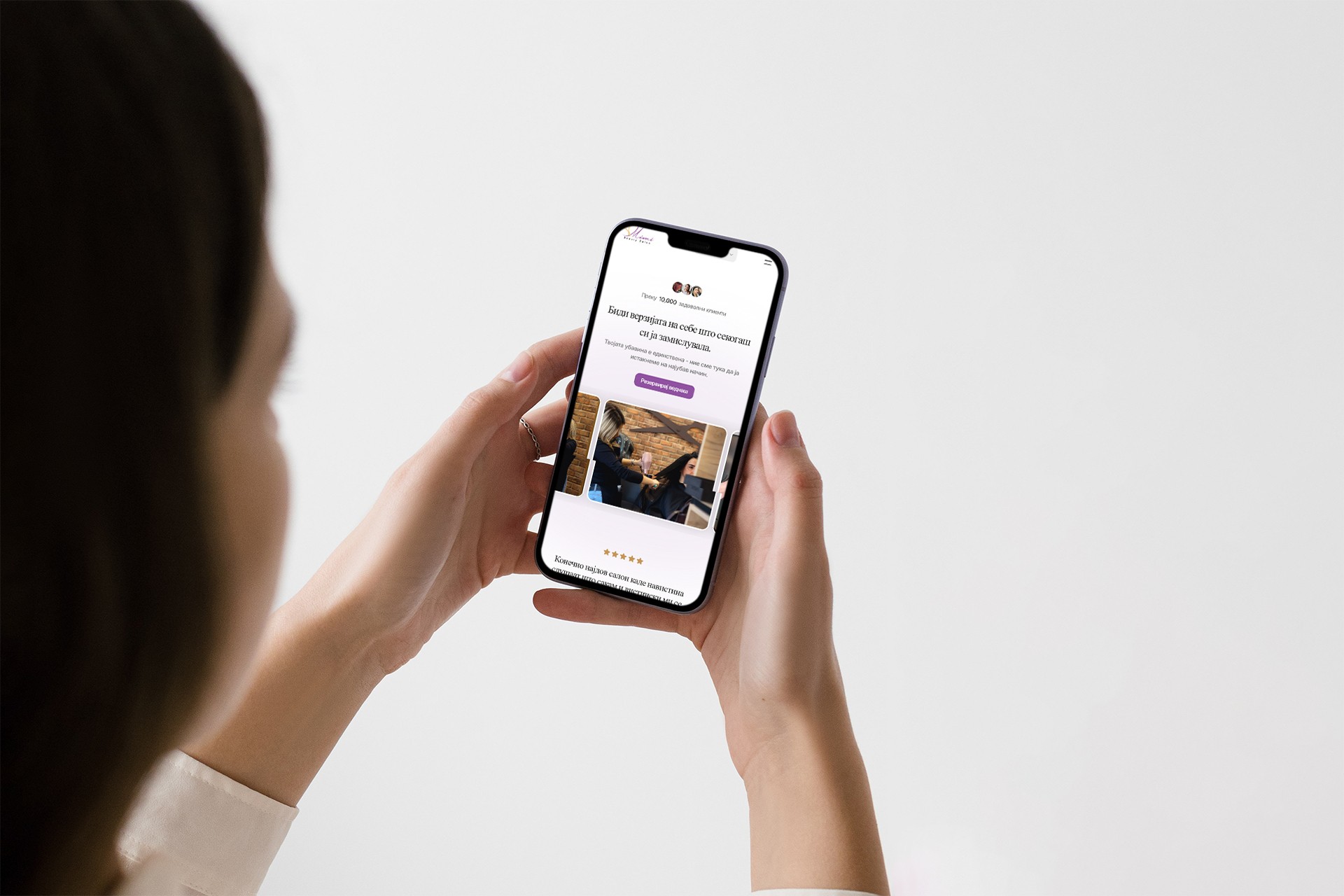 Страницата е дизајнирана да биде дигитално огледало на самиот салон — пријатна, средена и софистицирана.